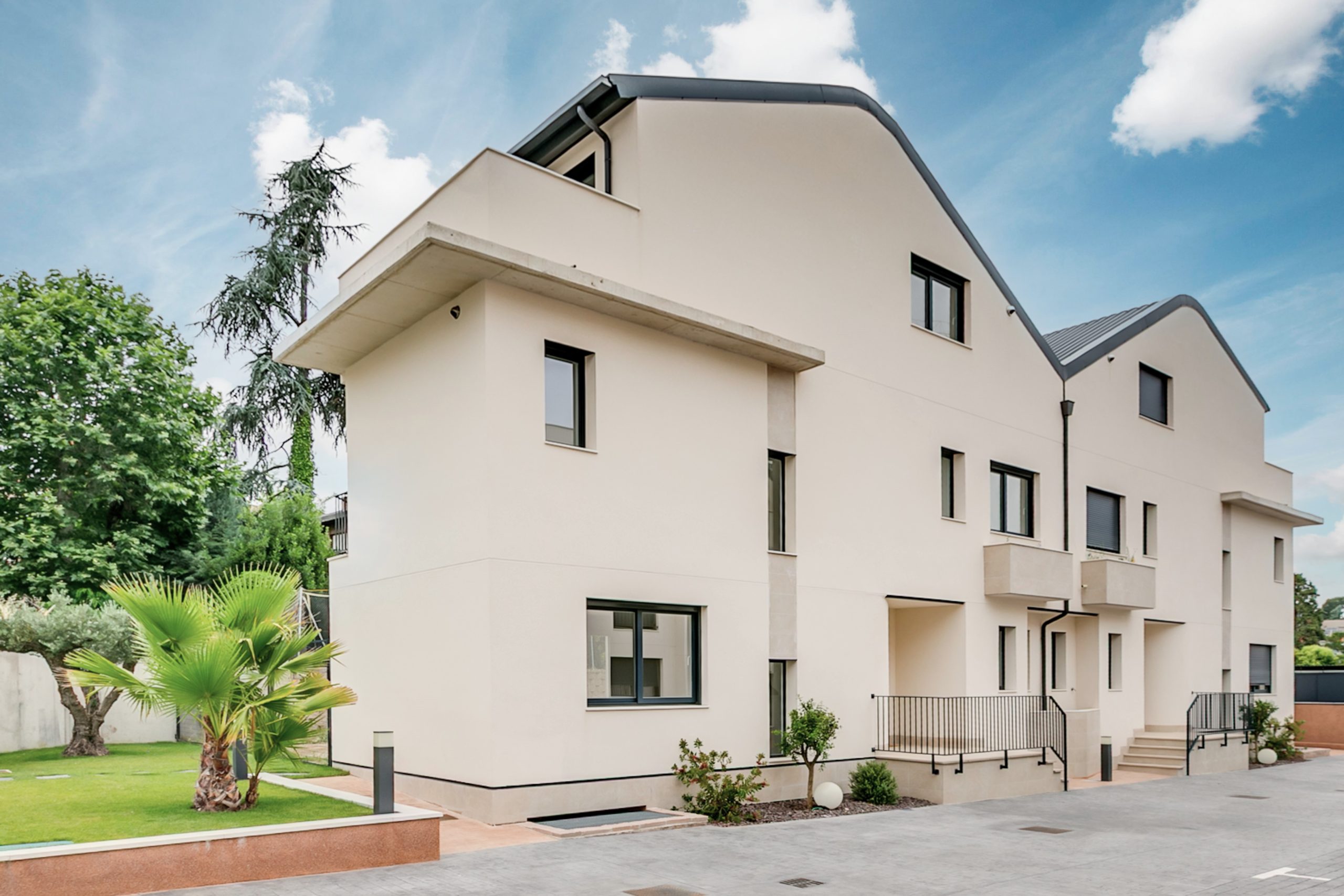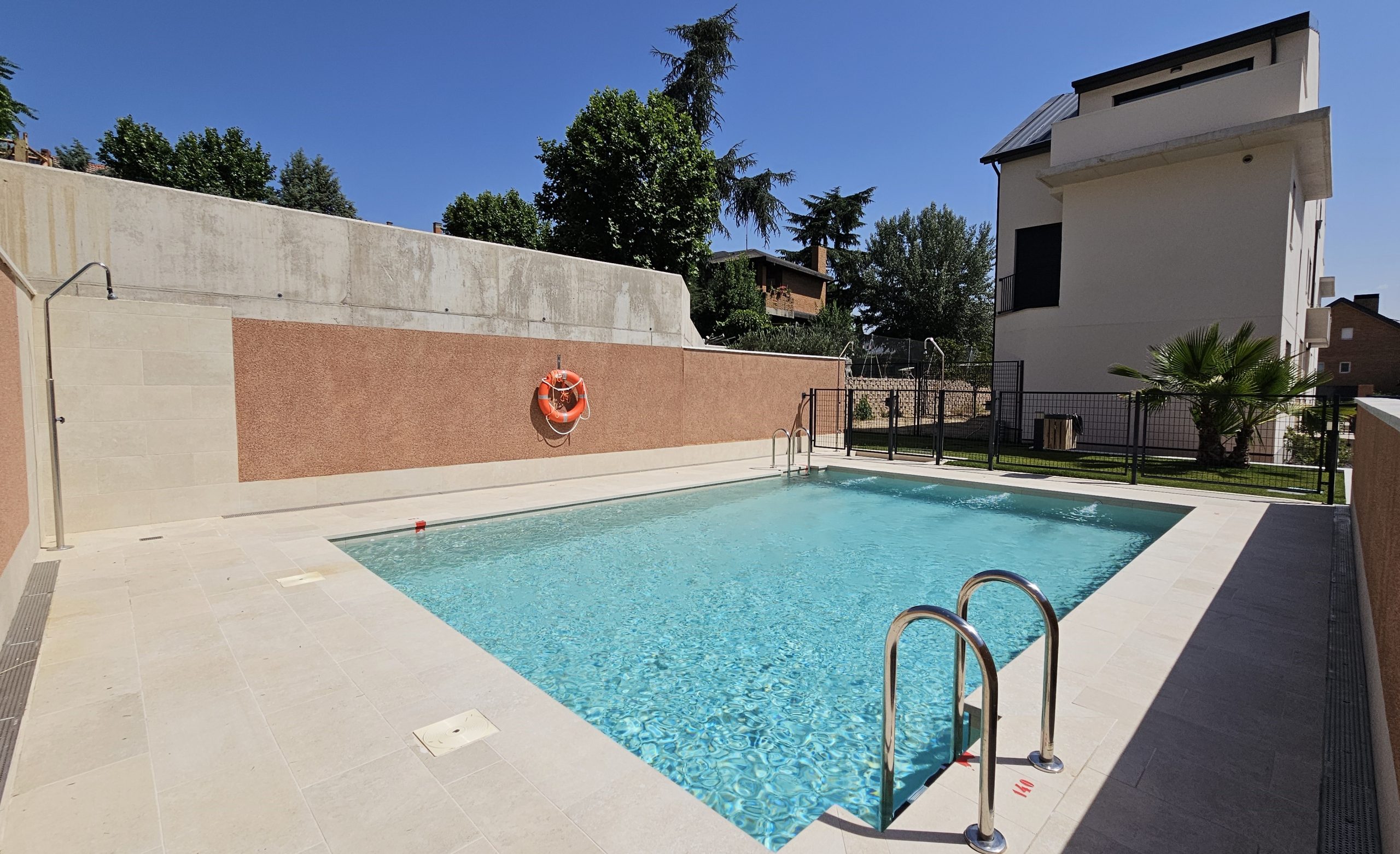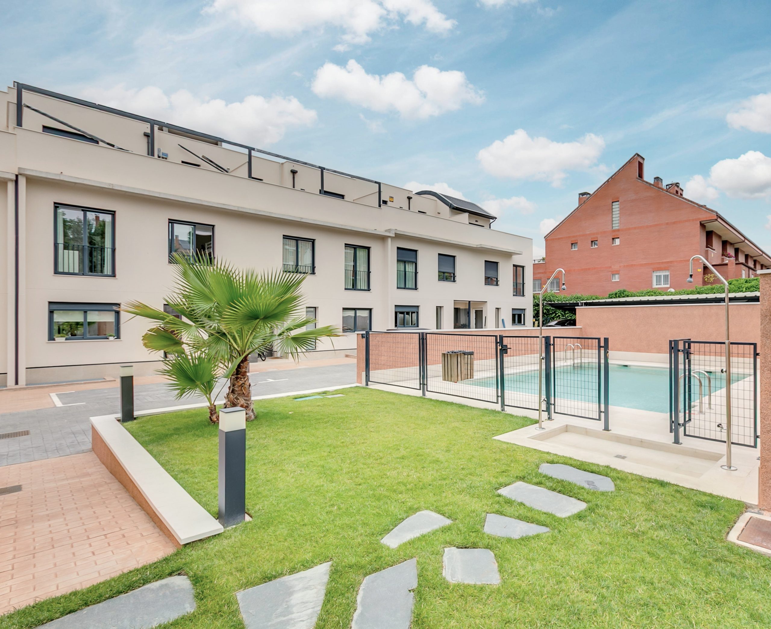 Promoción residencial compuesta por 10 viviendas unifamiliares adosadas de 300 m² cada una, organizadas en una urbanización privada con zonas ajardinadas y piscina comunitaria en Pozuelo de Alarcón, uno de las zonas más exclusivas de Madrid.